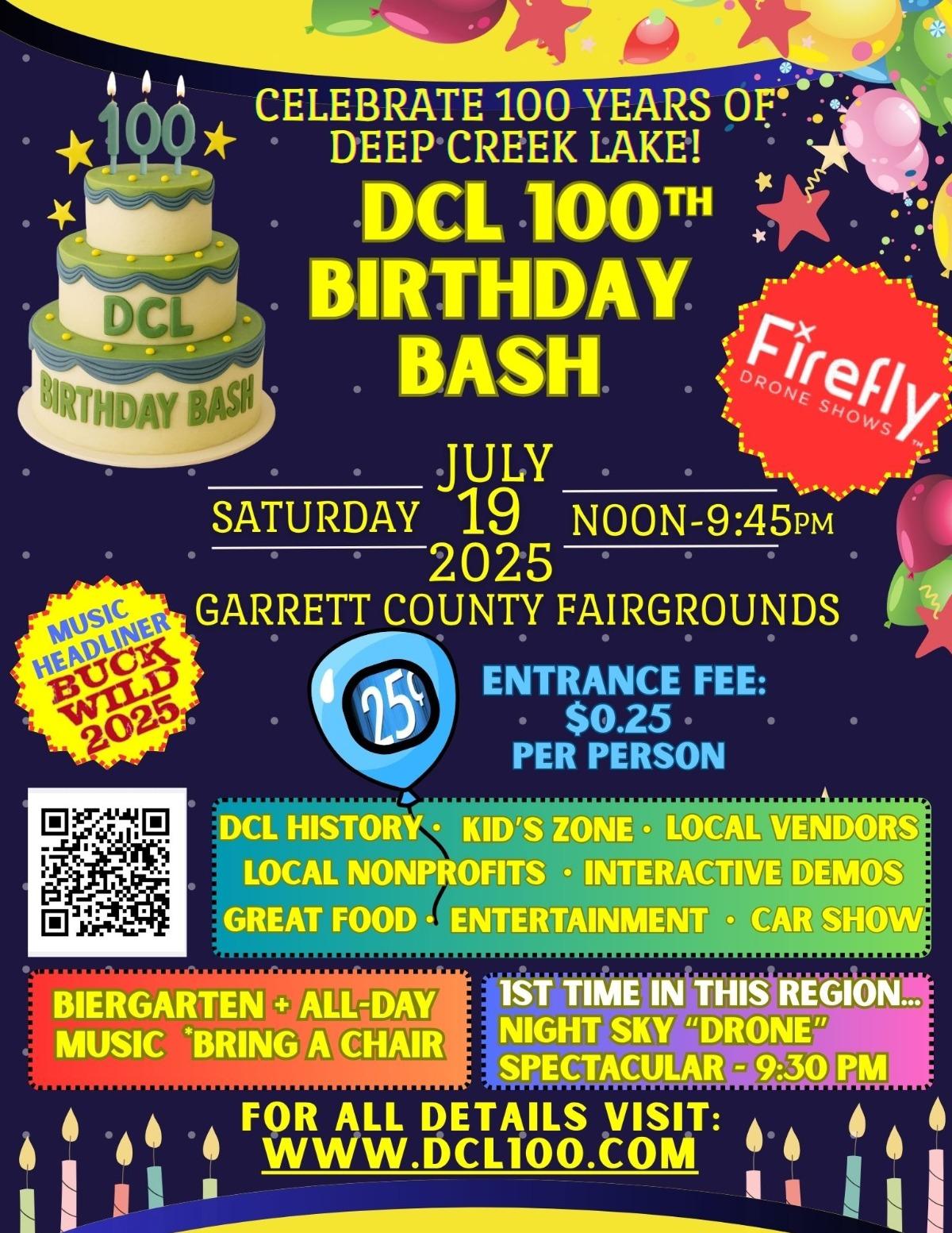 JULY 19 - DCL100 Birthday Bash will be held at the Garrett County Fairgrounds from noon-10PM. For just a quarter to enter, you can enjoy live music, a Kidzone, parade, crafts, food vendors, and contests.